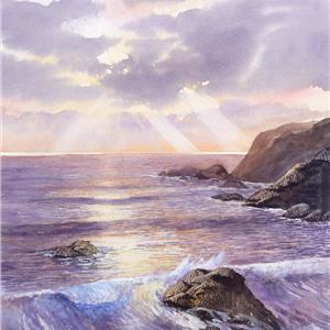 This wonderful painting appears in Terry's first 'Painting Water' book and shows the light breaking through the clouds in spectacular fashion, reflecting onto the water and creating a fabulous light to this painting.