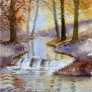 This little painting includes lovely wet into wet distance, Autumn foliage and lovely reflections of the trees in the water emphasising Terry's skill at painting a complex scene in a concise way.
