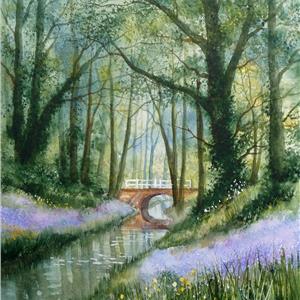 The wet into wet delicate background is the perfect backdrop for the trees and foliage canopy, moving forward to the swathes of flowers in the foreground.