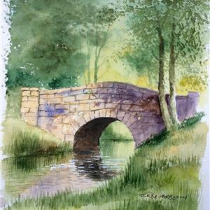This little painting includes lovely wet into wet techniques to achieve these reflections of this delightful bridge.