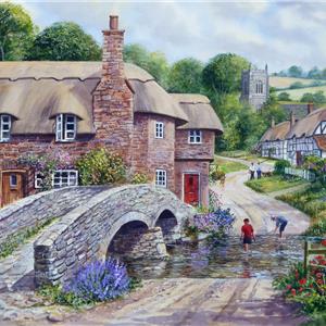 A quintessentially English scene, so favoured by Terry, he loved this kind of view featuring English life in the country.This painting of Packhorse Bridge is the original painting used by Gibson's jigsaw puzzles.