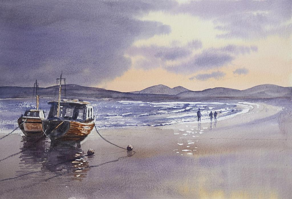 In "After the Storm," darker values around the boats make them pop, while lighter values towards the horizon add depth.