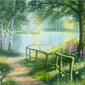 Riverside Walk - one of my favourites, this summer scene is full of light and shade with splashes of colour. The shady footpath just draws you deeper and deeper into the painting towards the cool waters edge. You will soon see why this is such a favourite of mine.