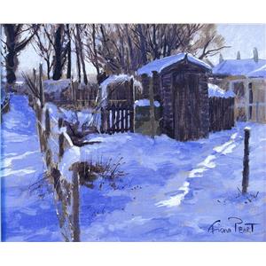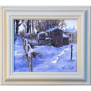 This is one of my favourite subjects, allotments in snow. I am particularly drawn to the limited colours and strong tonal contrasts created when the sun is low in the sky and the shadows are long.