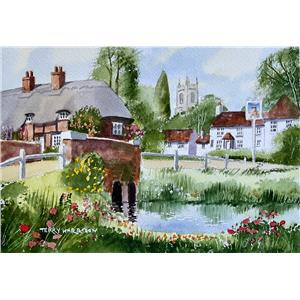 It was a scene Terry painted a number of times, both in summer and winter. The bridge and thatched building features in some of his works but having the village makes this special.